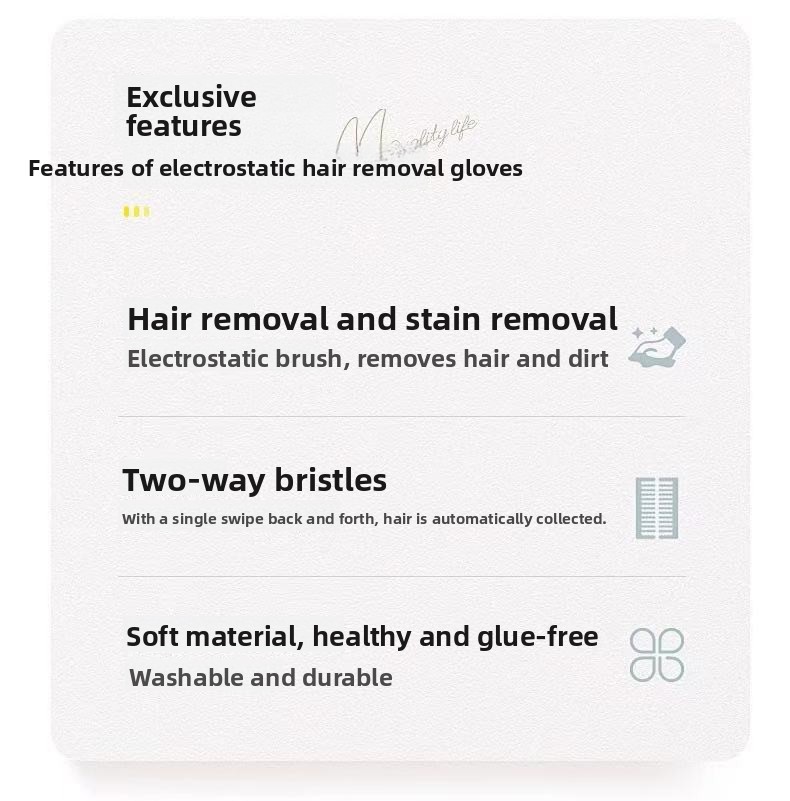 Pet Hair Removal: Efficiently removes pet hair from various surfaces using electrostatic technology.
